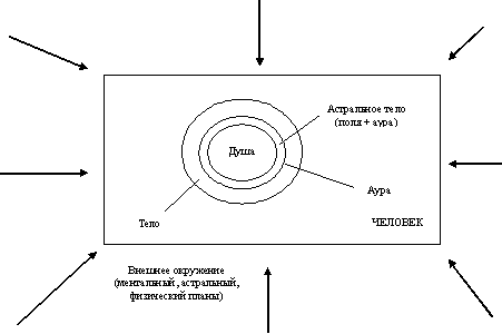 Человек представляет из себя завершенную структуру, сущность. В нем находят свое отражение мир предметный (физический), астральный и ментальный. Эти миры (как и структуры человека) неотделимы друг от друга. Разделение необходимо для того, чтоб попытаться объяснить механизм и сделать возможным передачу этого знания.