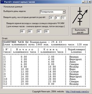 Расчет планетарных часов (Программа для Windows, 10.6 kb)